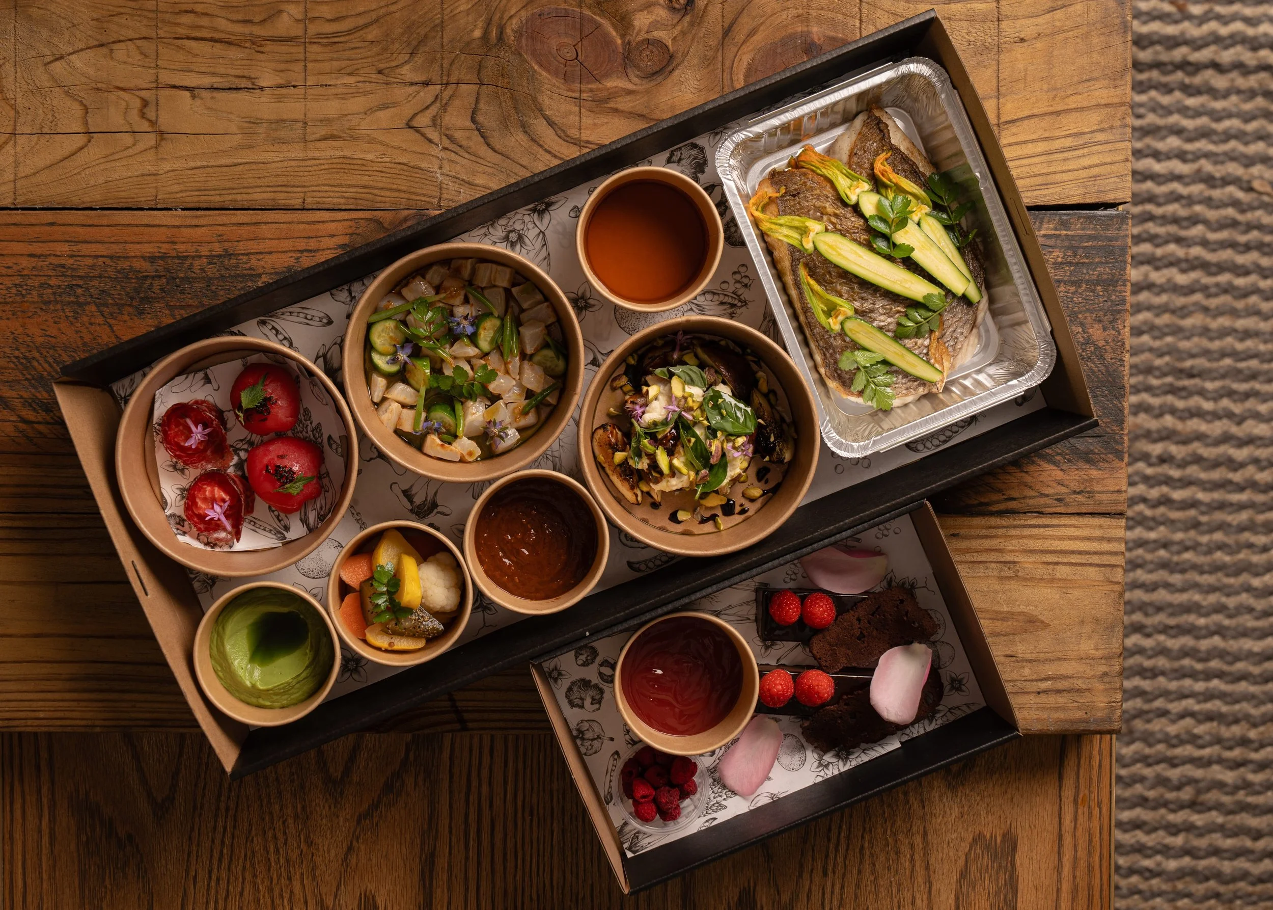 For those who prefer to celebrate from the comfort of their home, we’ve devised a beautiful degustation for 2, ‘Out of the Box’ and available for pick up between February 13 and 15.